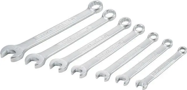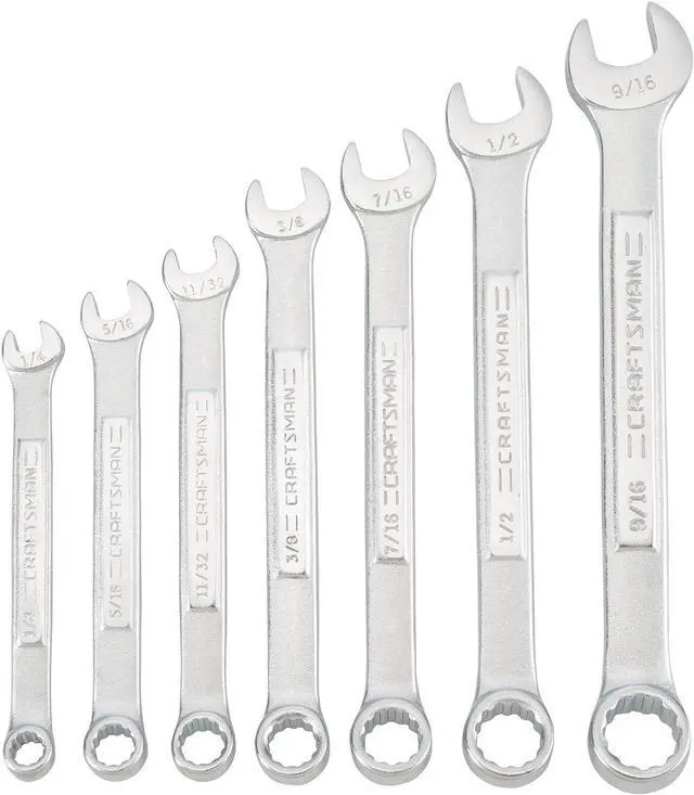 7-piece SAE set includes the following sizes: 1/4-in, 5/16-in, 11/32-in, 3/8-in, 7/16-in, 1/2-in and 9/16-in
