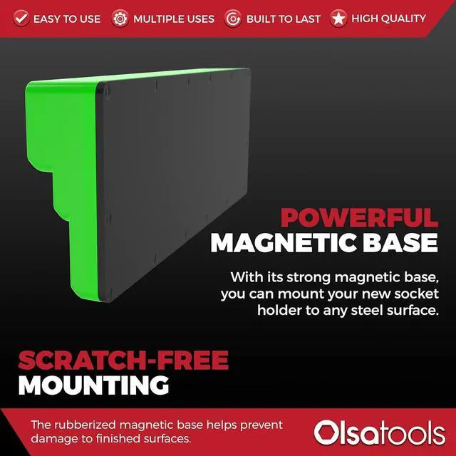 SCRATCH-FREE MOUNTING - To protect painted surfaces, we built this magnetic organizer for sockets with a RUBBERIZED magnetic base that will never scratch any steel surface you mount it to. So go ahead and mount it on your tool box or steel cabinet, worry free.