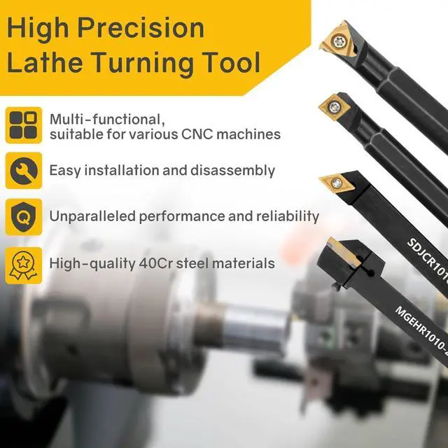 Joogto Indexable Lathe Turning Tool Holder 3/8'' 10mm-Shank 7 Pcs Metal Lathe Tools Holder Set for Turning Grooving Threading Boring with 7 Pcs Carbide Inserts Turning Inserts Carbide Turning Tool Set