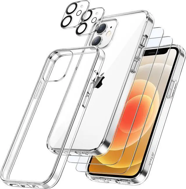 [5-in-1 Full Protection] Exclusively fit iPhone 12 6.1 -inch. This bumper case with 2-pack tempered glass screen protectors and 2-pack camera lens protectors provides all-around protection for your phone