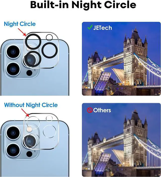 [Night Shooting Mode] The camera lens protector with upgraded built-in night circle allows you to use the flash function normally at night. High light transmittance ensures the original quality of pictures and videos