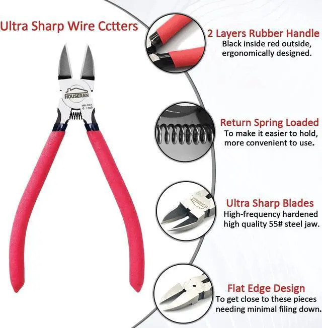 Diagonal Cutters ApplicationGood quality side cutters, samll wire cutters are perfect for flush cutting stems of artificial flowers and other wired products used in crafting and decorating. Works well for many things like trimming plastic parts, small wire, pc board and zip ties. Don't try to cut steel as it will damage the cutting edge