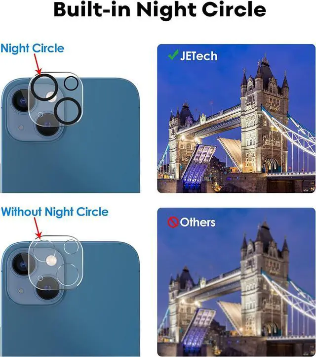 [Night Shooting Mode] The camera lens protector with upgraded built-in night circle allows you to use the flash function normally at night. High light transmittance ensures the original quality of pictures and videos