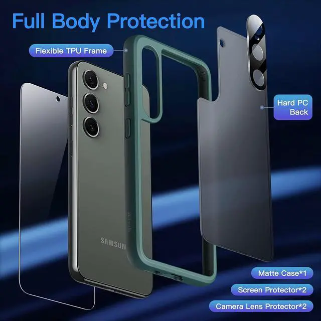 [Compatibility] Exclusively designed for Samsung Galaxy S23 5G 6.1 -inch. This protective matte case, together with 2-pack screen protectors and 2-pack camera lens protectors, provides a 360 degree all-around protection for your phone.