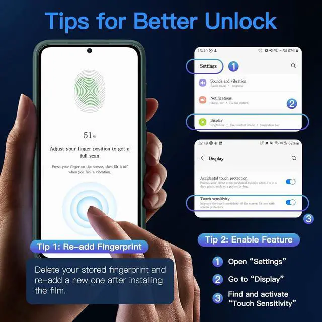 HD clear (NOTE: For better fingerprint unlock, go to devices Settings to activate the Touch sensitivity and re-add your fingerprint after installing the film)