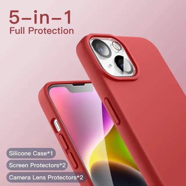 [5-in-1 Full Protection] Specially designed for iPhone 14 6.1 -Inch. The silicone case is silky-touch and offers a proper grip to prevent the phone from accidentally slipping out of your hand. The 5-in-1 combination provides comprehensive protection and takes into account the beauty of your phone.