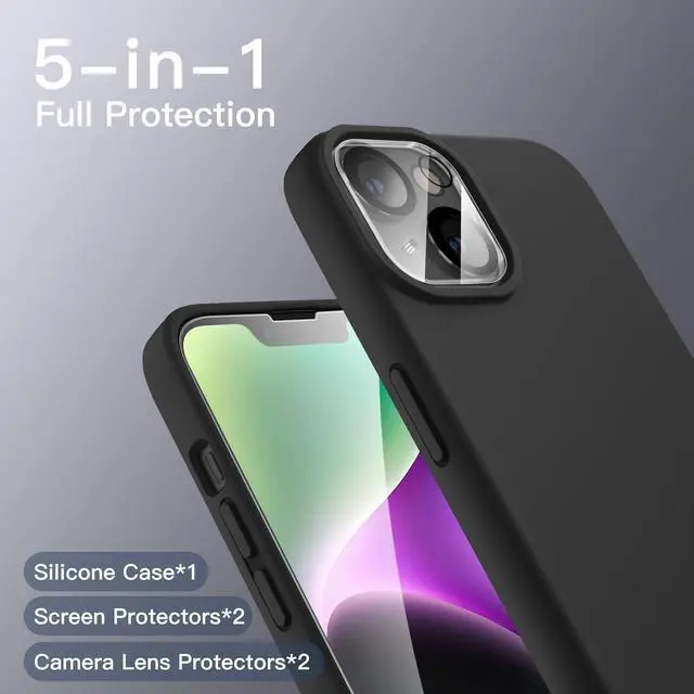 [5-in-1 Full Protection] Specially designed for iPhone 14 6.1 -Inch. The silicone case is silky-touch and offers a proper grip to prevent the phone from accidentally slipping out of your hand. The 5-in-1 combination provides comprehensive protection and takes into account the beauty of your phone.