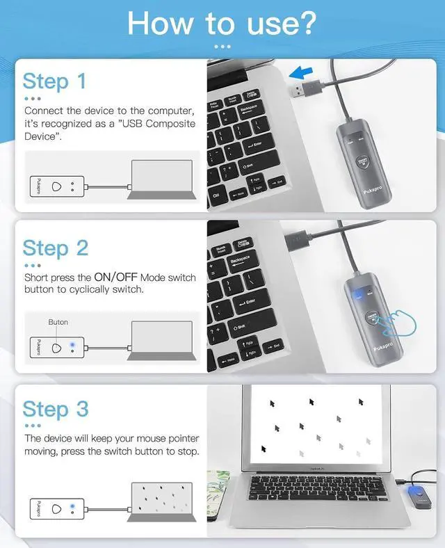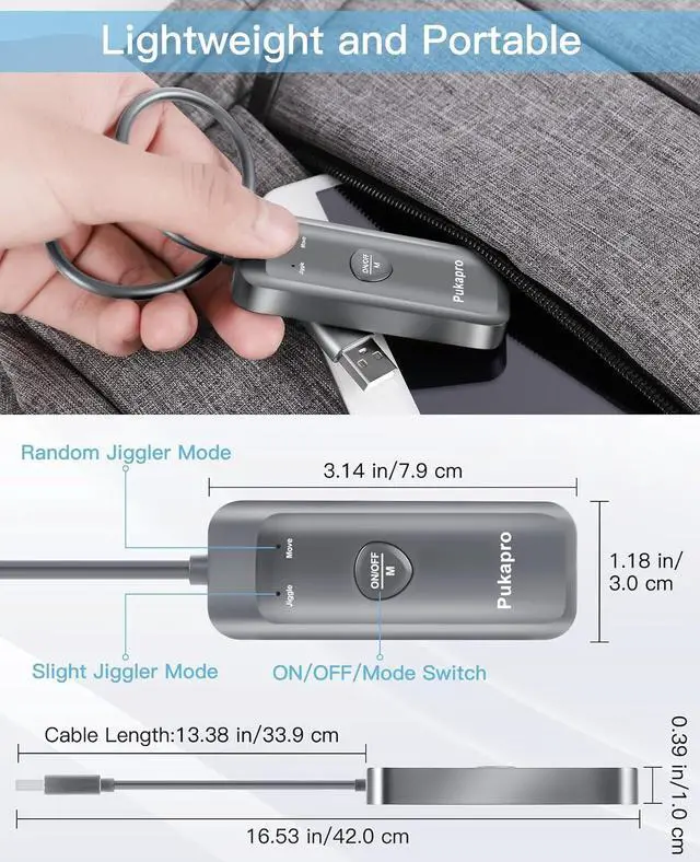 • Ensure Data Security - This mouse jiggler mover is designed without any memory or driver, so you don't have to worry about it stealing your data or being invaded by malicious software.