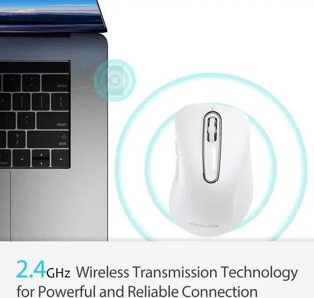 Strong Durability & MultifunctionWireless mouse battery powered passed 6, 000, 000 times keystroke test to guarantee extra durability. 2.4GH z wireless technology and professional chip ensure longer working distance. memzuoix wireless mouse is also constructed with 5 buttons with multifunctional functions to improve productivity and efficiency in daily work.