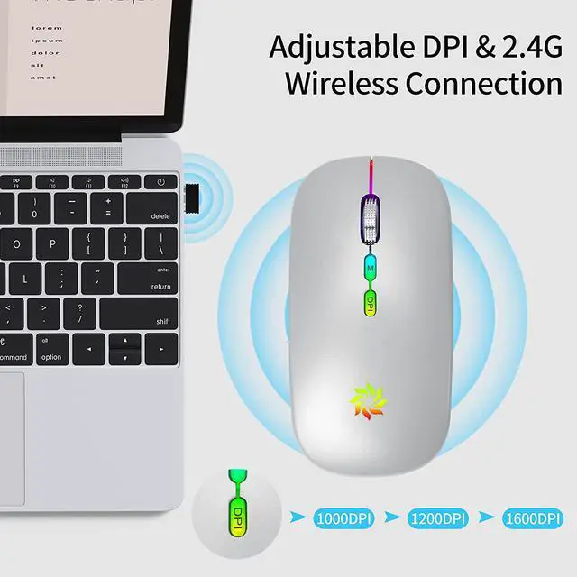 Plug and Play, Rechargable and Long Battery Life No need to install any driver, just plug the USB receiver into your laptop. Wireless mouse has a built-in rechargeable battery that can be recharged via a USB cable. 3-Level adjustable DPI (1000/1200/1600 DPI), freely to satisfy daily work.