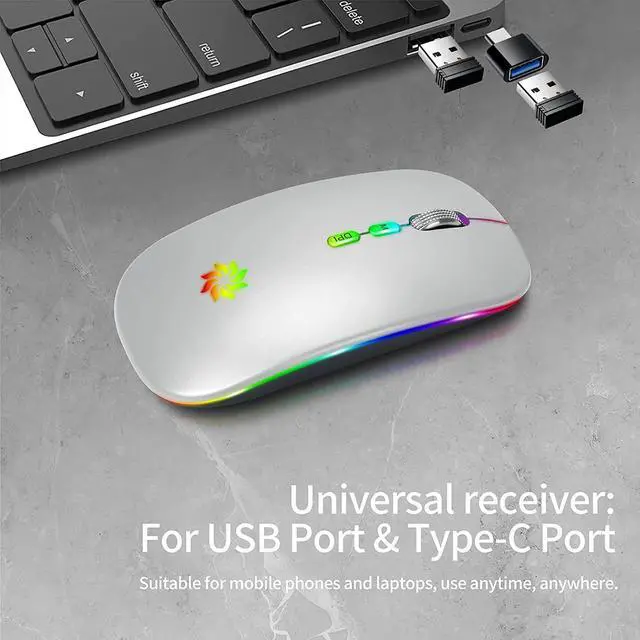 Upgrade Colorful Breathing LED Colorful LED Mouse will bring our work endless fun. Through the switch at the bottom of the mouse, you can freely switch the lights, the soft and bright colorful breathing lights change randomly, providing you with a comfortable atmosphere in work or life.