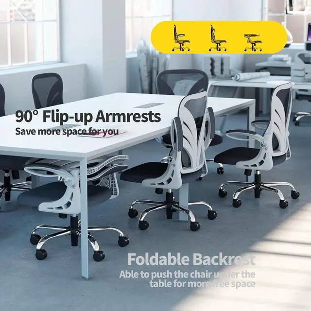 [SPACE SAVER]In addition to foldable arms, this desk chair features a folding backrest function. When you don't need to sit down, the chair can be folded up to leave most space.
