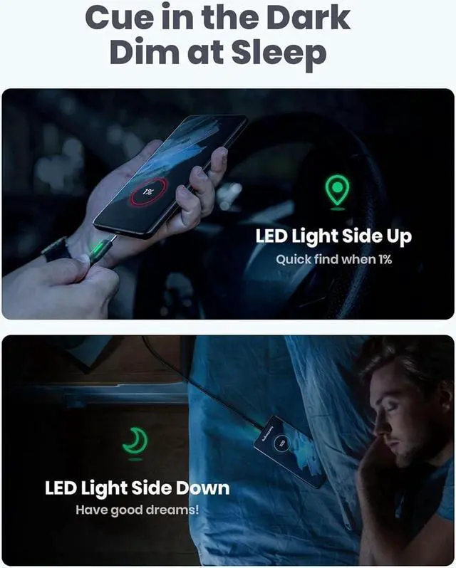 Sleep-Friendly LED Indicator: Boast LED indicator at the USB C end to help you easily find it in the dark.