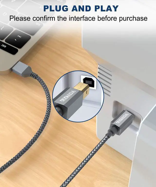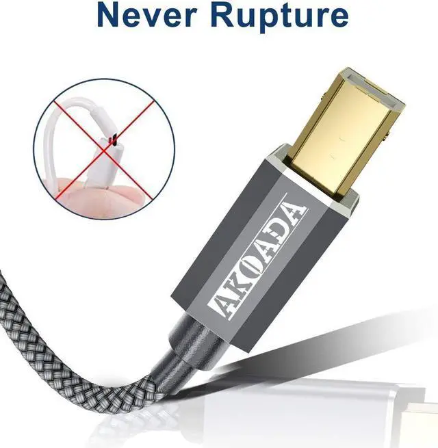Reinforced Joint Design: Printer cable canon with test of 20, 000+ bend, the special design makes the cable joints more durable. The flexible and wear-resistant armor nylon braided material offers stronger protection.