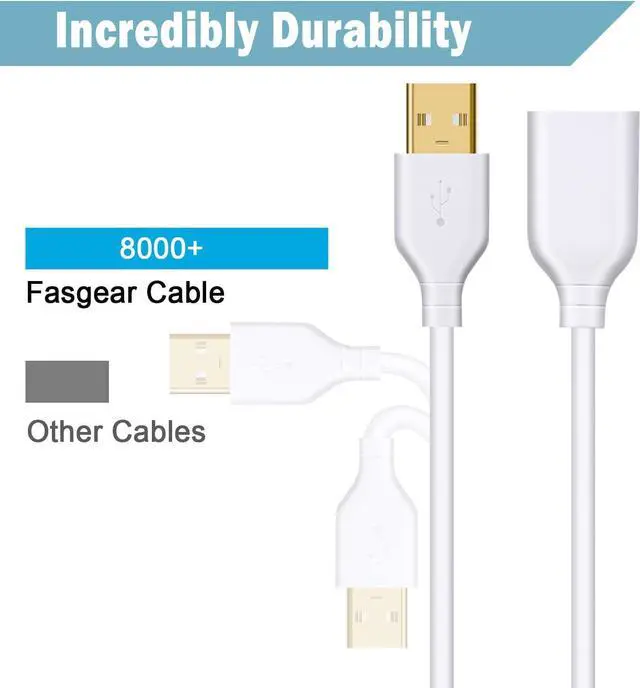 Stable & DurableGold-plated connectors for optimal signal clarity and shielding to minimize interference makes the cable transfer data in stable and smooth. With more high quality wire core and a tough PVC jacket, corrosion-resistant, prolong the cable service life, extension cable can stand 15, 000+ bending.