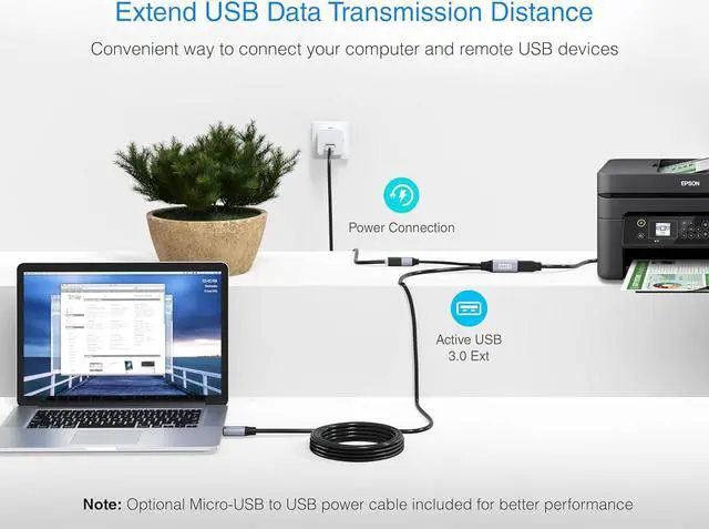 ACTIVE EXTENSION CABLE: Easy way to extend your USB connection to the computer (Mac/PC) for use with VR Headsets, Game Consoles, USB Flash Drive, Hard Drive, Card Reader, Mouse, Keyboard, Printer, Scanner, Camera and other USB peripherals