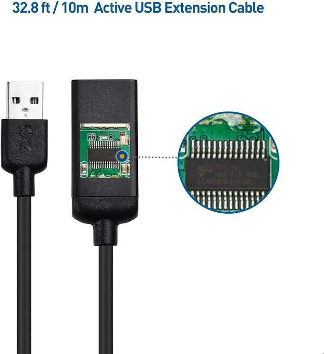 ACTIVE CHIPSET in this bus-powered USB 2.0 extension cable accurately boosts the signal to ensure error-free data transmission