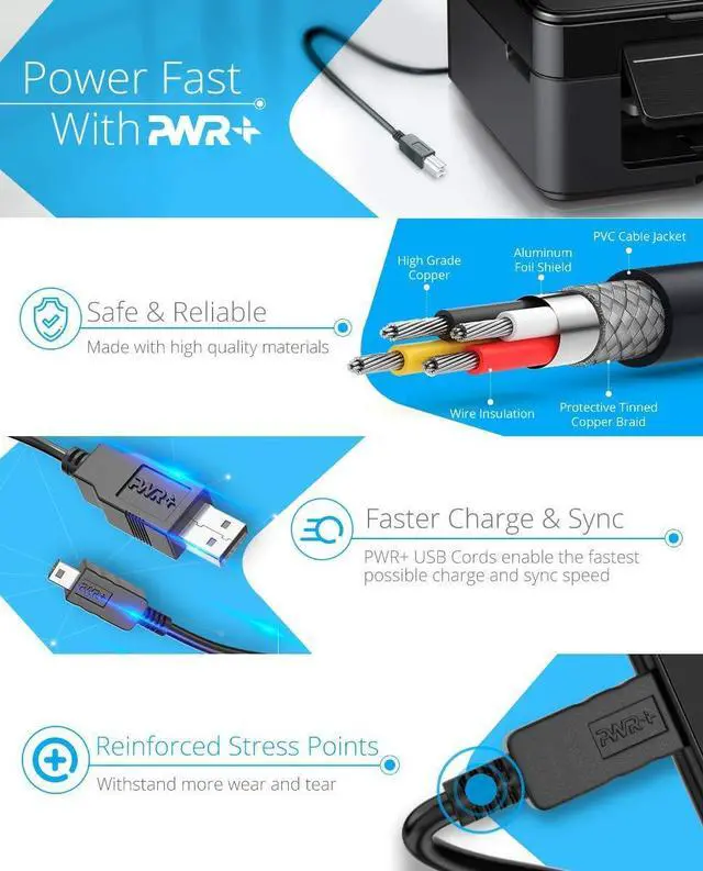 SAFETY: Pwr+ cables manufactured with the highest quality materials. CE/FCC/RoHS certified.