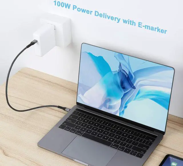 100W Power DeliveryWith E-marker chip inside, this USB C to USB C cable offers rapid charge up to 20V/5A (max). Your new 87W 15 MacBook Pro at full speed. Besides, it supports Quick charge QC 3.0 and PD rapid charging (with PD charger).