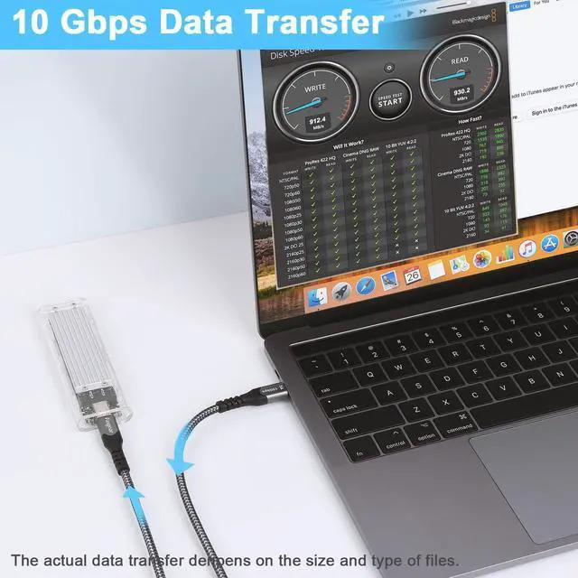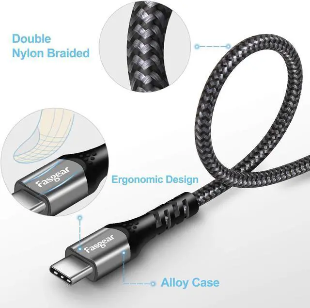 10Gbps Data TransferFasgear USB C to USB C Cable supports data transfer rates up to 10Gbps, 20x faster than USB 2.0 Type C cable, only a few seconds with an HD movie. And large files will be finished in seconds.