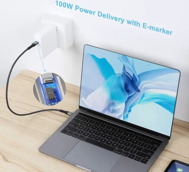 100W Power DeliveryWith E-marker chip inside, this USB C to USB C cable offers rapid charge up to 20V/5A (max). Your new 87W 15 MacBook Pro at full speed. Besides, it supports Quick charge QC 3.0 and PD rapid charging (with PD charger).