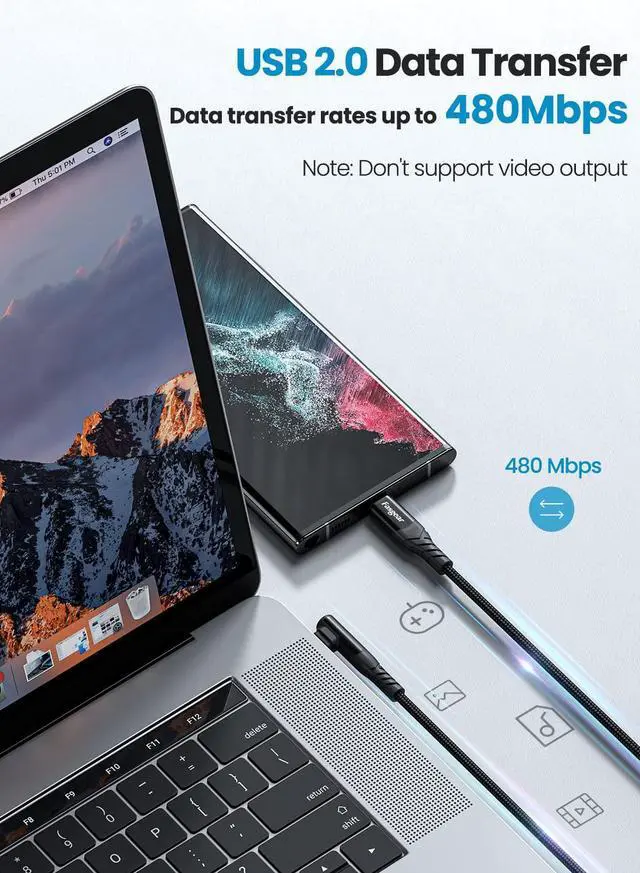 60W PD Fast ChargingFasgear type C to type C charger lead can support max 60W Power Delivery PD fast charging for USB-C laptops or smartphones with max 60W (20V 3A) output. Data transfer speed up to 480Mbps (USB 2.0 ), which means 1G file can be transferred within 30s.