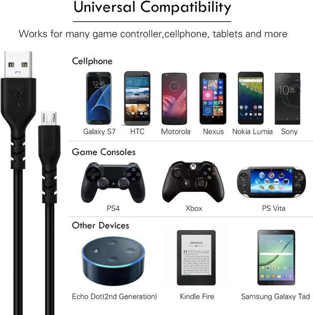 [Universal Compatibility]: Most Android smart phones, Windows, Cell Phones and many other devices with a Micro USB-Port, like S7/S7+/S6/S6+ Edge/Note 5, Nexus, HTC, Motorola, Nokia, LG, Sony, Blackberry, PS4, Xbox, PS Vita, GPS devices, battery packs, Bluetooth speakers, wireless keyboards, MP3 players, computers, cameras, handheld games consoles, hard drives, e-readers and more