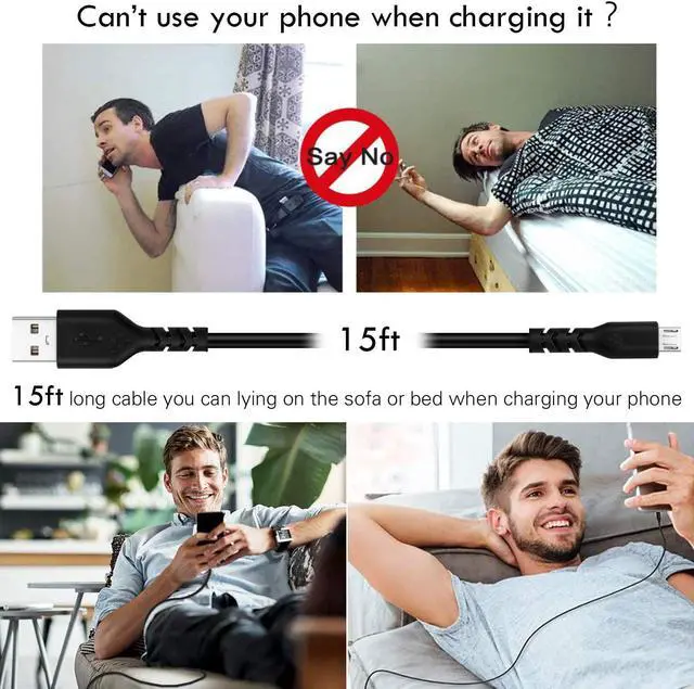 Long Micro USB Cable ]: 5M/15FT Micro USB cable is the perfect choice for you to replace your original cable and provides extra reach (as the extension cable ) for syncing or charging your devices at workplace, office, home, bedroom, car, the way of the journey, etc. Premium compact, heat-resistant connector makes it easy and secure to connect your devices.