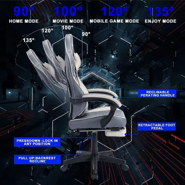 Ergonomic Design: Adjustable high backrest can recline 90 ° - 135 ° and lock in any position, The backrest provide good lower back support and prevent your back from getting tired. It is also combined with the footrest, it can be used for gaming, working and napping.