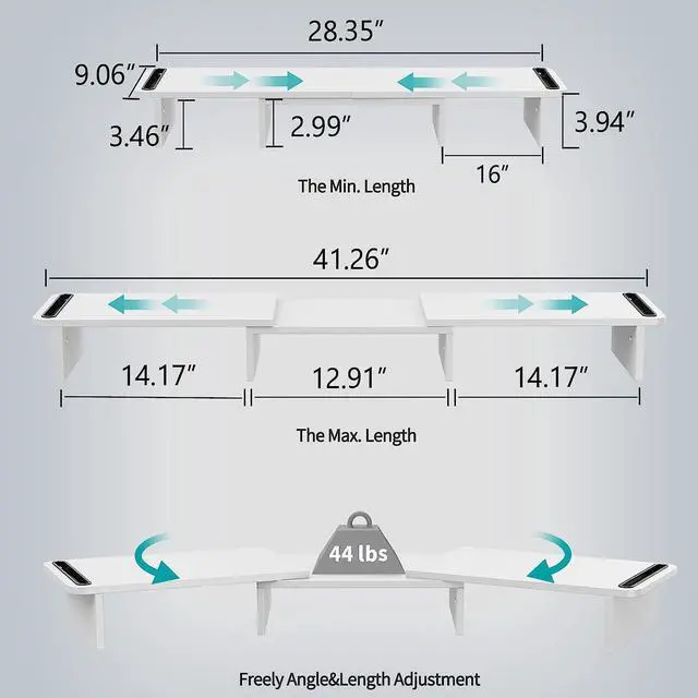 Flexibility of extension and move: With two sides resting on the middle riser with a pivot point, this desk stand riser makes the whole unit easy to extend and angle.