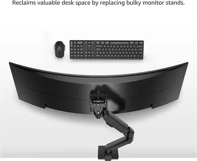 Reclaims valuable desk space by replacing bulky monitor stands; Monitor arm easily adjusts ultrawide, curved monitors or curved gaming monitors across an expansive range of motion for comfortable, personalized views sitting or standing.