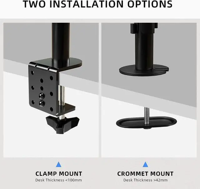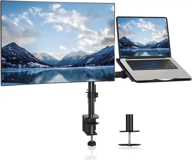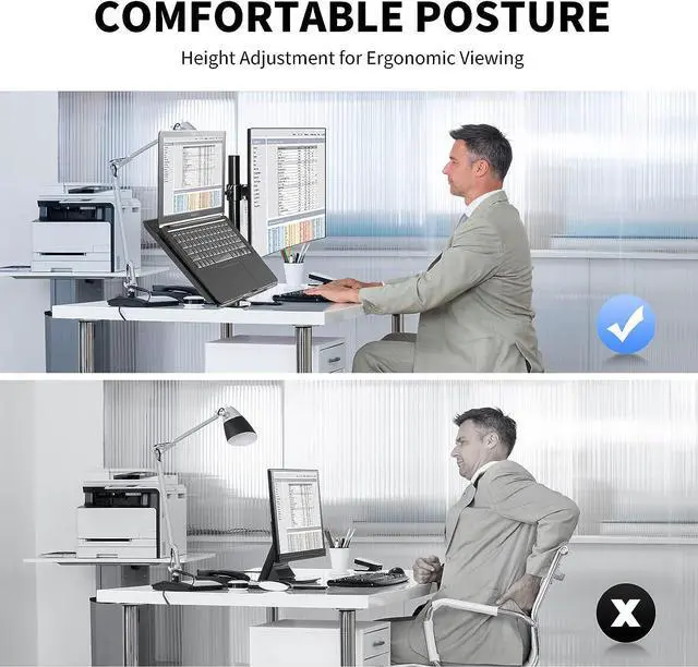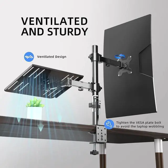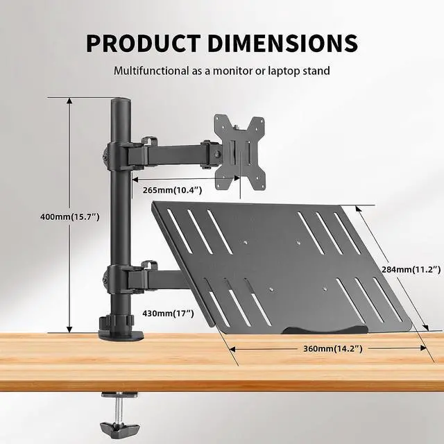 MD6432TP004 monitor and notebook desk mount allows you to lift the monitor and laptop up from your desk surface to an ergonomic height