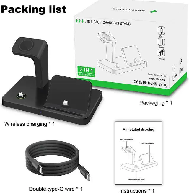 What Youll Get The package includes a 3 in 1 Charger Station *1, 3.3 ft type-c to type-c cable *1, user manual *1. All our customers enjoy up to 2 years of product warranty from the date of purchase. If you have any problems, please feel free to contact our professional and responsive customer service.
