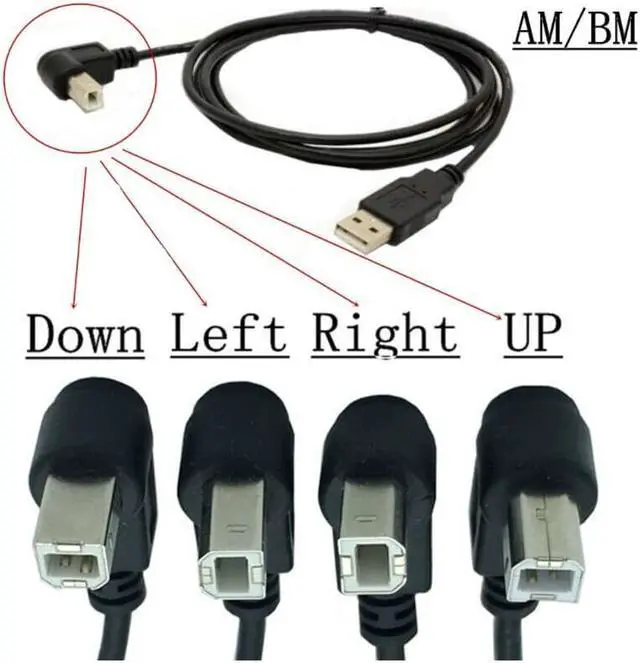 USB 2.0 A Male to USB B Male Type B BM Cable Up / Down / Right / Left Angle Printer scanner 90 degree Cord BM Angled Cable