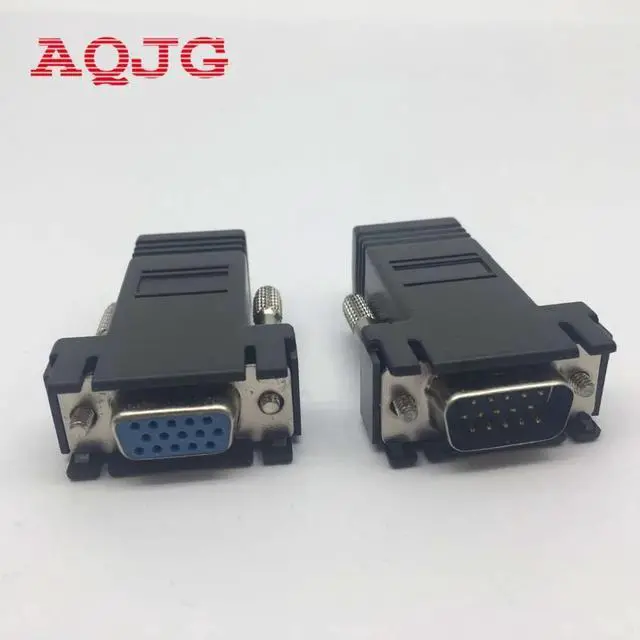 VGA Extender Male to LAN CAT5 CAT6 RJ45 Network Ethernet Cable Female Adapter Computer Extra Switch Converter Kit Black
