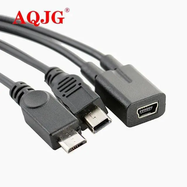 Mini USB 5Pin Female to mini usb 5pin male + micro USB male Y Splitter 1 to 2 Converter Charging Cable 30CM