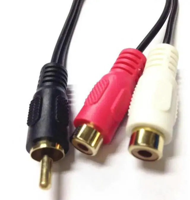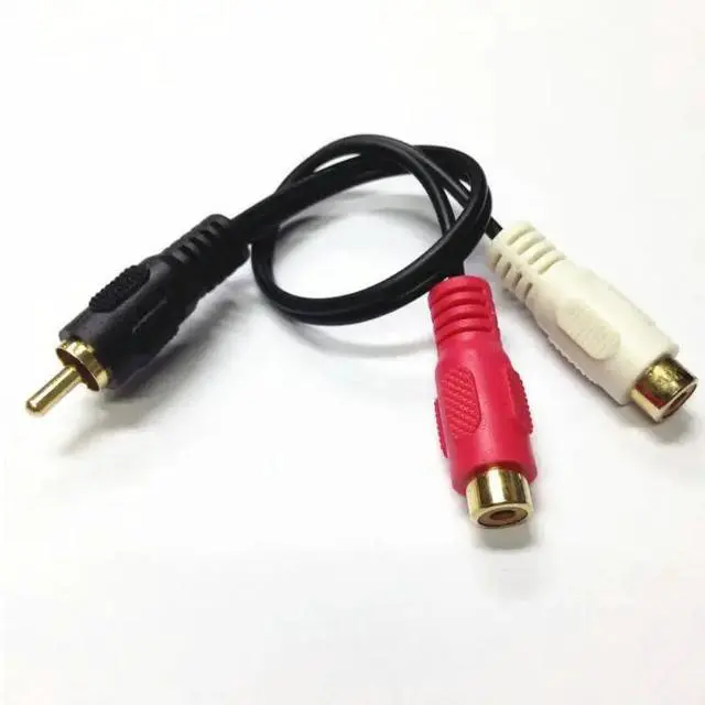 Gold Rca male plug to 2 RCA female jack adapter cable RCA Plug/2 RCA Jack cable 25CM