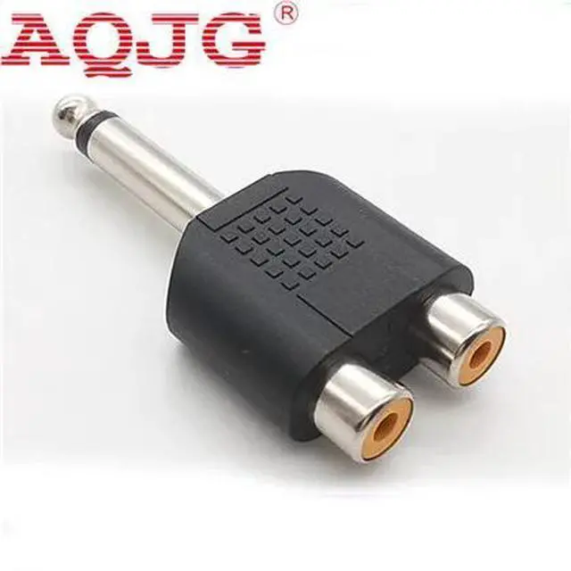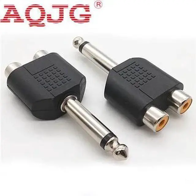 5pcs 6.35mm Plug Two Channel Male Turn 2RCA Audio Connector Female ,6.5 To AV Adapter One Divided Into Two Microphone Plug