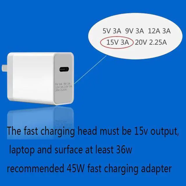 USB Type C PD 15V Power Charger Adapter Converter Charging Cable for Microsoft Surface Pro 7/6/5/4/3/GO/BOOK Laptop 1/2
