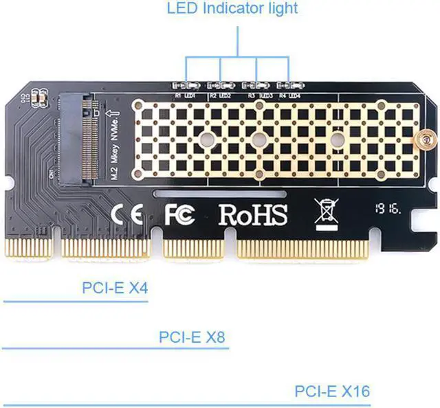 kebidumei M. 2 NVME PCIE to M2 Adapter LED NVME SSD M2 PCIE x16 Expansion Card Computer Adapter Interface M. 2 NVMe SSD To PCIE