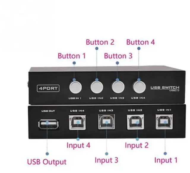 Printer Parts USB 2.0 4 Port Sharing Switch Accessory Switcher Selector Box Hub For PC Computer Manual Scanner Printer