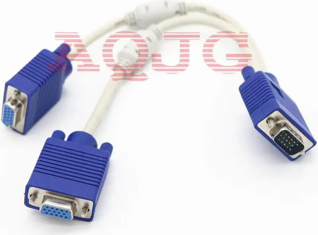 RGB VGA SVGA Male to 2 VGA two HDB15 Female Splitter Adapter extension Cable w/ core VGA splitter adaptor connector converter