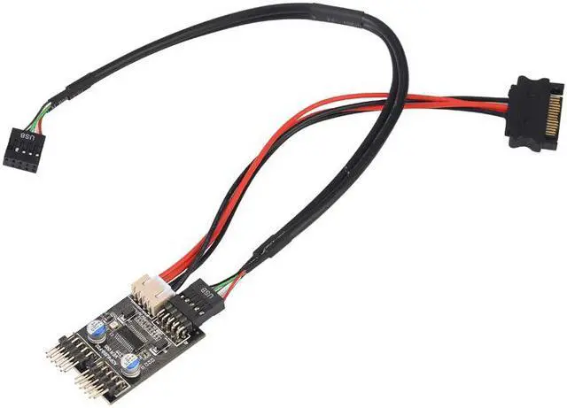 9pin USB Connector 1 to 2 USB Extension Cable USB HUB USB 2.0 9Pin Header Connector Adapter Port Multiplier with SATA Power Cable