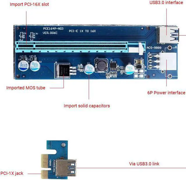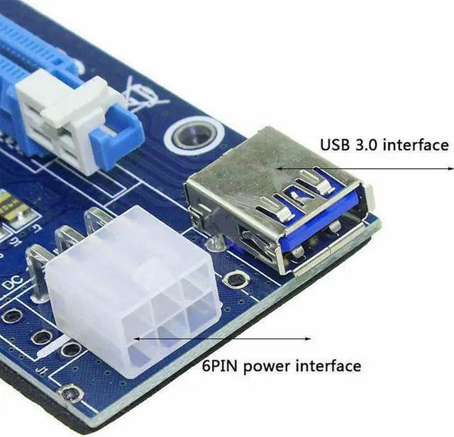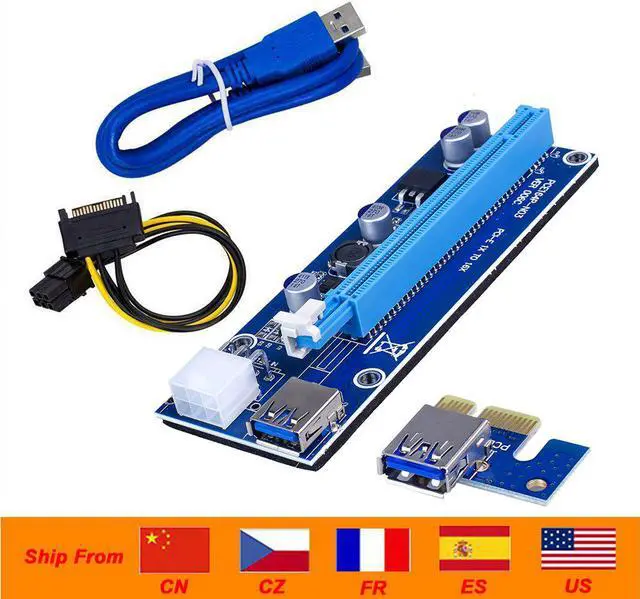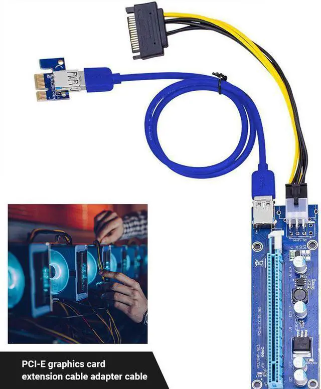 VER006C PCI-E Riser Card 006C PCIE 1X to 16X Extender 60CM USB 3.0 Cable SATA to 6Pin Power Cord for GPU Mining