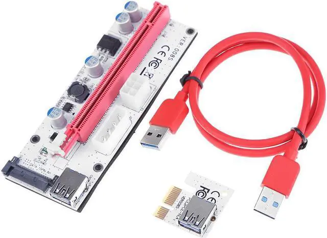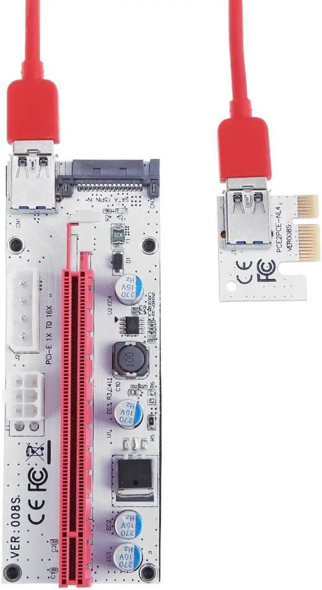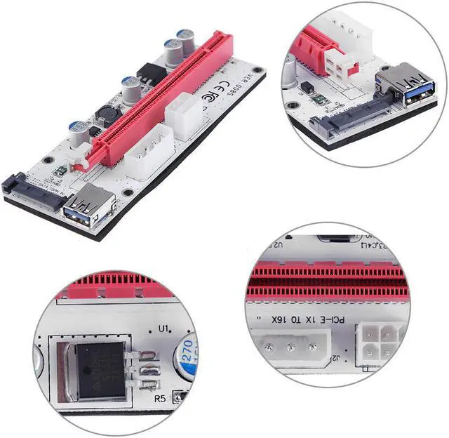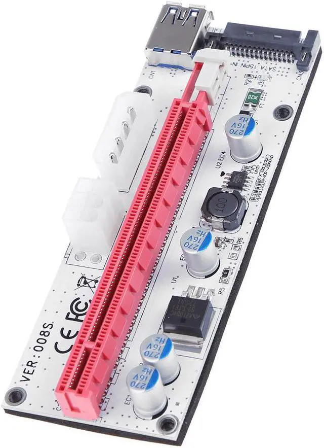 PCI-E Riser Card VER008S 008s PCI Express USB 3.0 1X 16X Extender 4Pin SATA 6PIN Mining Card Adapter for bitcoin BTC Motherboard