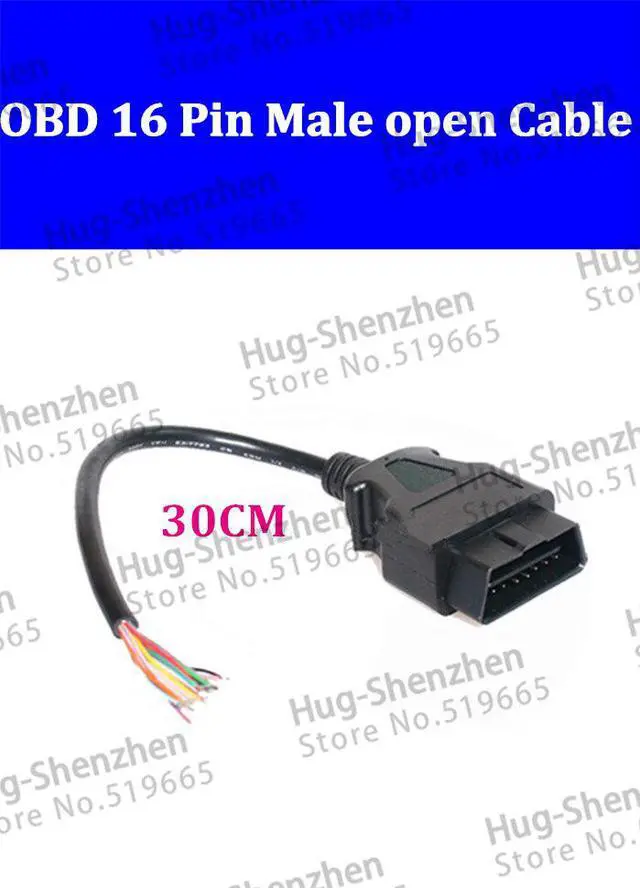 2pcs/lot 30cm OBD 2 cavo kabel Opening Cable 16 Pin Male Extension Connector Diagnostic wire cord Extender