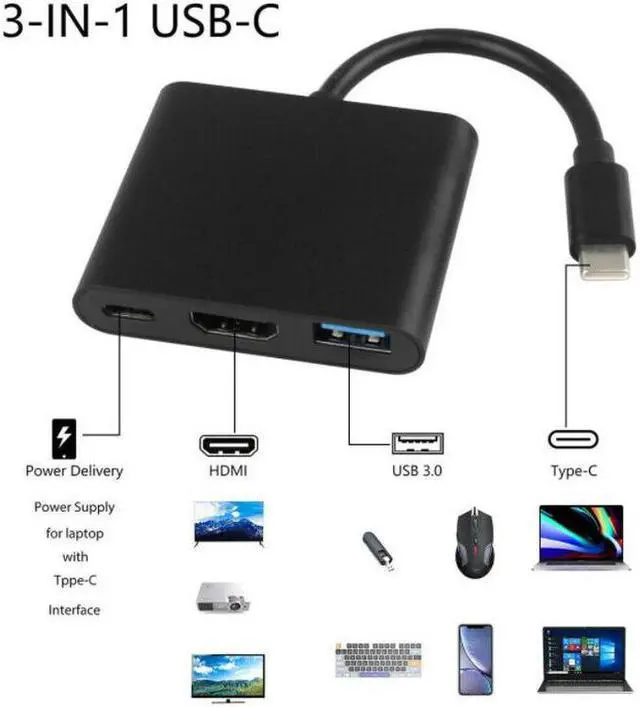 3 in 1 USB C Type-C 3.1 to 4K HDMI-Compatible PD Charging Cable USB 3.0 Adapter Hub Converter