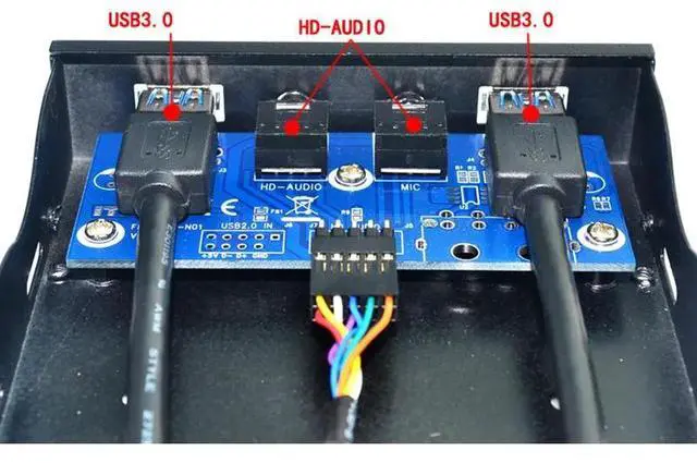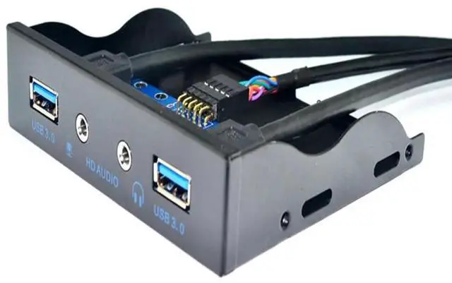2 Port USB 3.0 Hub Splitter HD Audio 3.5 mm Earphone Jack Mic Interface Front Panel Bracket Adapter for PC 20 Pin 3.5" Floppy Bay