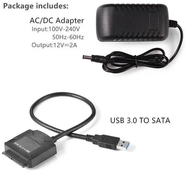 USB 3.0 To SATA Power Adapter For 3.5 inch HDD 2.5 inch SSD hard disk with 12V 2A AC DC power converter