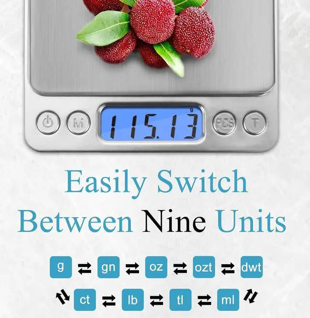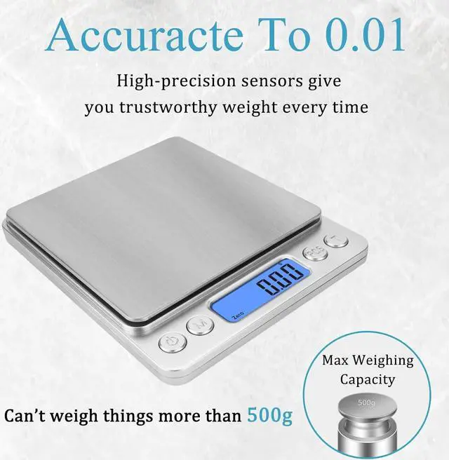 . -- Equipped with high precision sensor can accurate 0.01 g, and the weight range is from 0.04 g to 500g, nine units makes it suitable use for weighing jewelry, medicine, flavor and cooking ingredients, improve work efficiency and convenient life.